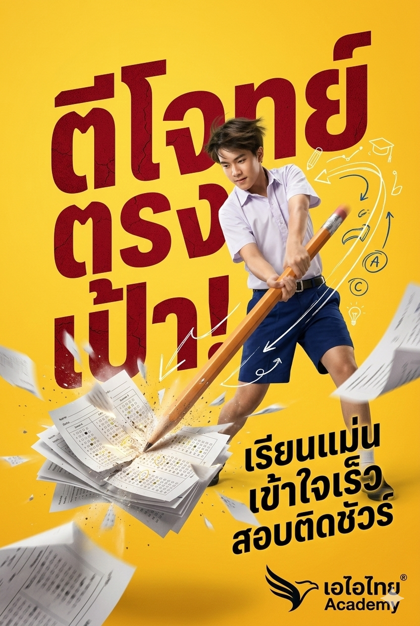 ***[ชื่อสถาบัน] = เอไอไทย Academy ***[logo] = แนบรุป logo มาแล้ว ***[ตัวหนังสือใหญ่] = ตีโจทย์ตรงเป้า! ***[ตัวหนังสือรอง] = เรี…